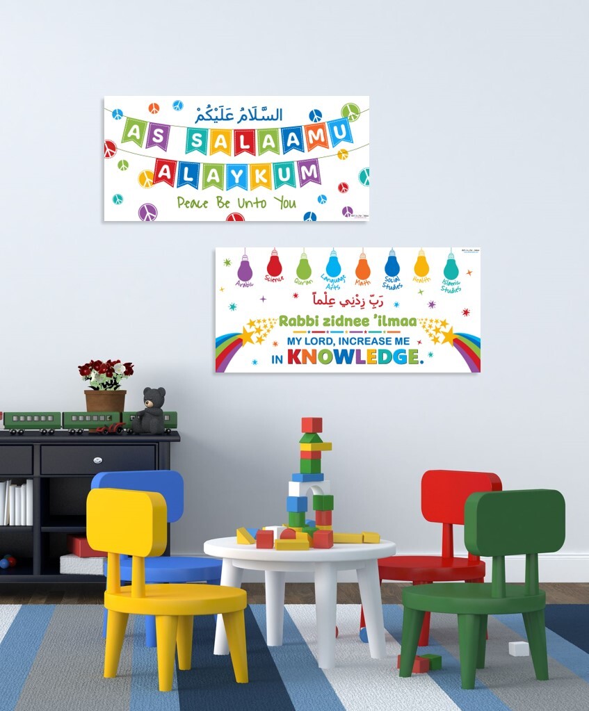 As Salaamu Alaykum and Rabbi Zidnee Ilmaa - Set of Two Banners - 17 x 36 inches (3 feet long)